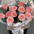 Букет из 11 розовых роз с добавлением эвкалипта в тильной упаковке