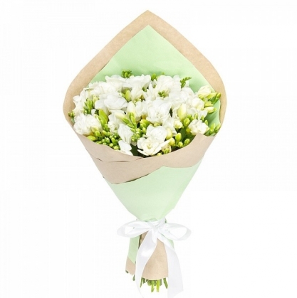 Белые фрезии в крафт бумаге | Заказ цветов в Подольске - Delaflor
