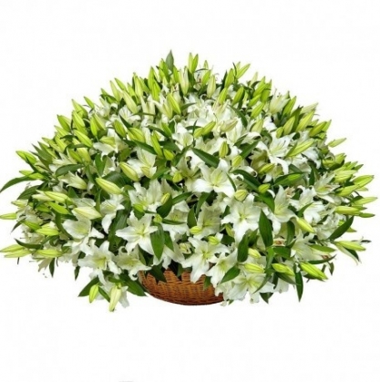 Огромная корзина белоснежных лилий