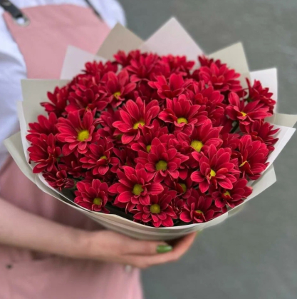 Букет из 9 бордовых кустовых хризантем | Купить в Подольске
