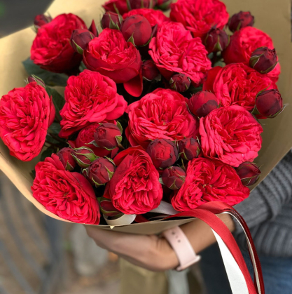 Букет из пионовидных роз Red Piano может быть выполнен в различных размерах и формах, от небольших композиций для уютных домашних праздников до масштабных букетов для торжественных мероприятий. Наши опытные флористы с удовольствием помогут вам подобрать идеальный букет, учитывая ваши предпочтения и бюджет.