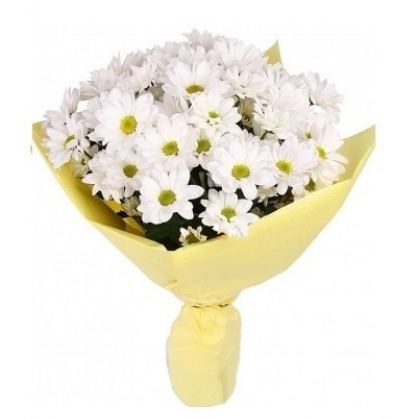 Чудесный букет из белых хризантем в натуральной упаковке