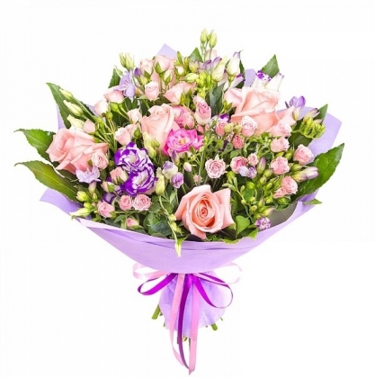 Композиция из кустовых роз, фрезии и эустомы | Delaflor Подольск