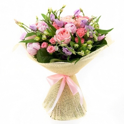 Сборный букет из пионов, эустомы и кустовых роз | Delaflor Подольск